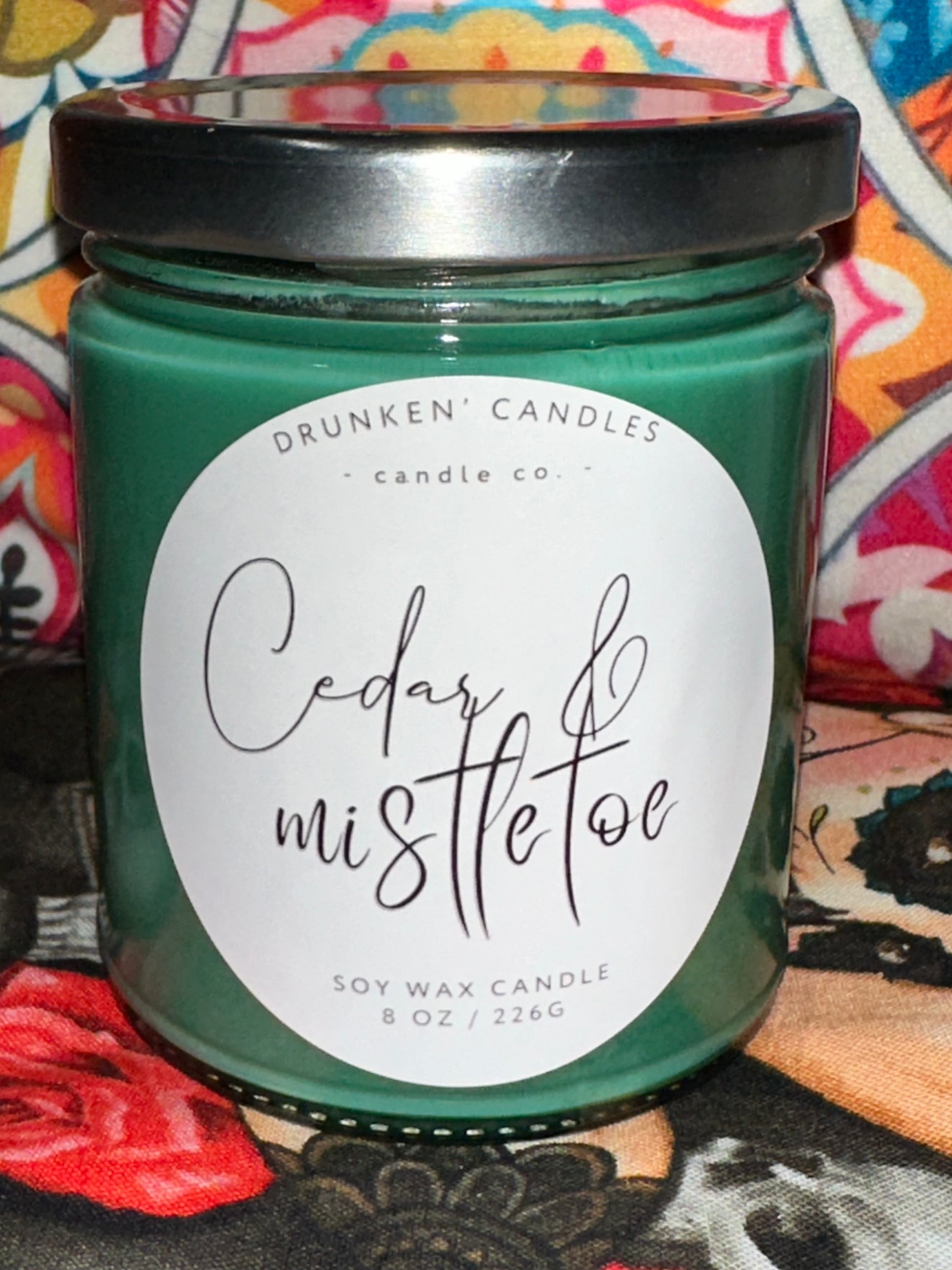 Experience the cozy, herbal scent of Cedar & Mistletoe with this 8 Oz. candle. With a strong cold throw and a burn time of 40-50 hours, this candle features a well-balanced blend of spicy, piney, and green notes, enhanced by woody and musky undertones. Perfect for creating a warm and inviting atmosphere in any room.
