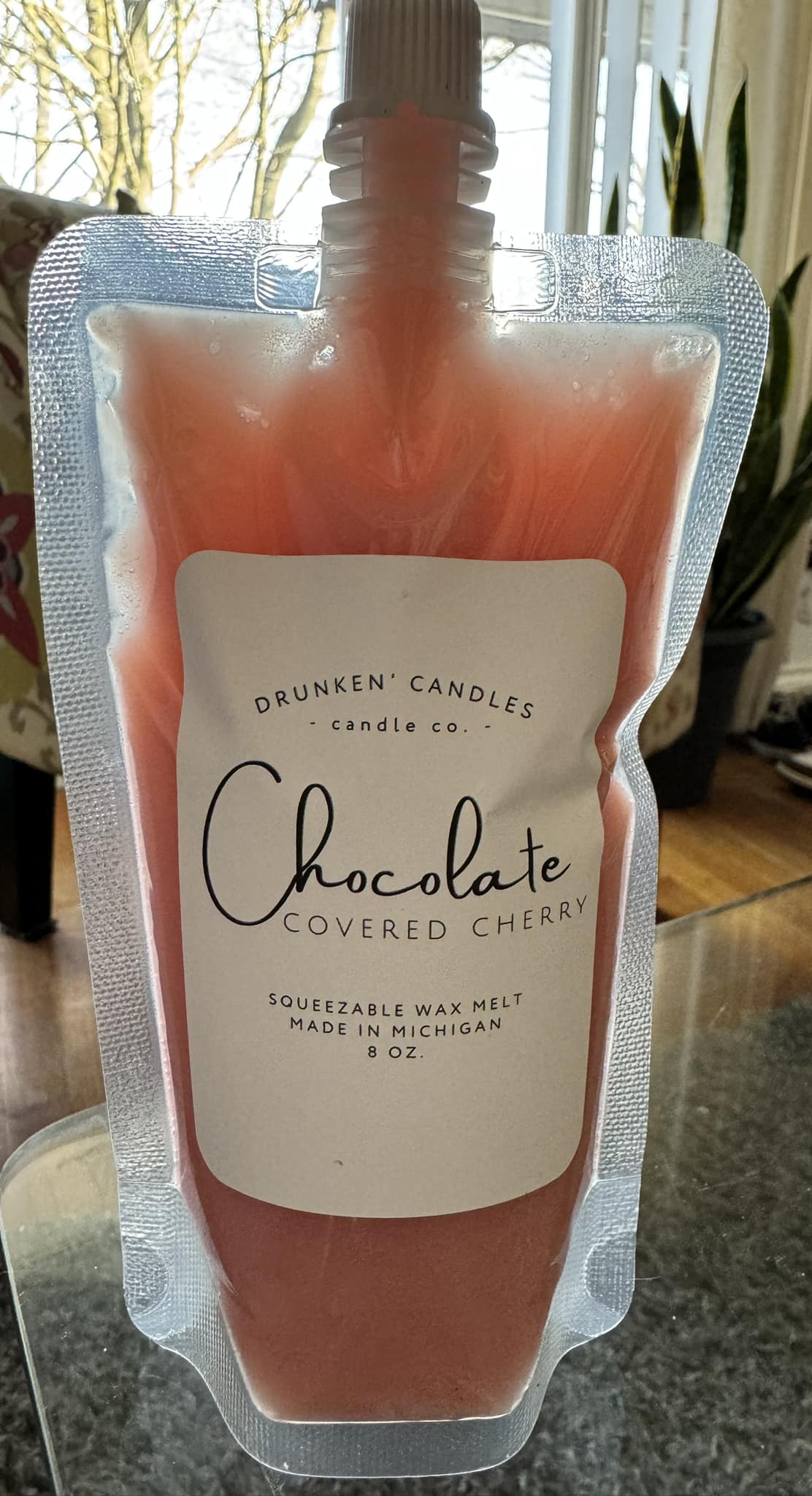 Highly fragrant squeezable wax melt! Smells just like a chocolate covered cherry! Just squeeze into your favorite wax warmer, and enjoy the sweet scent!