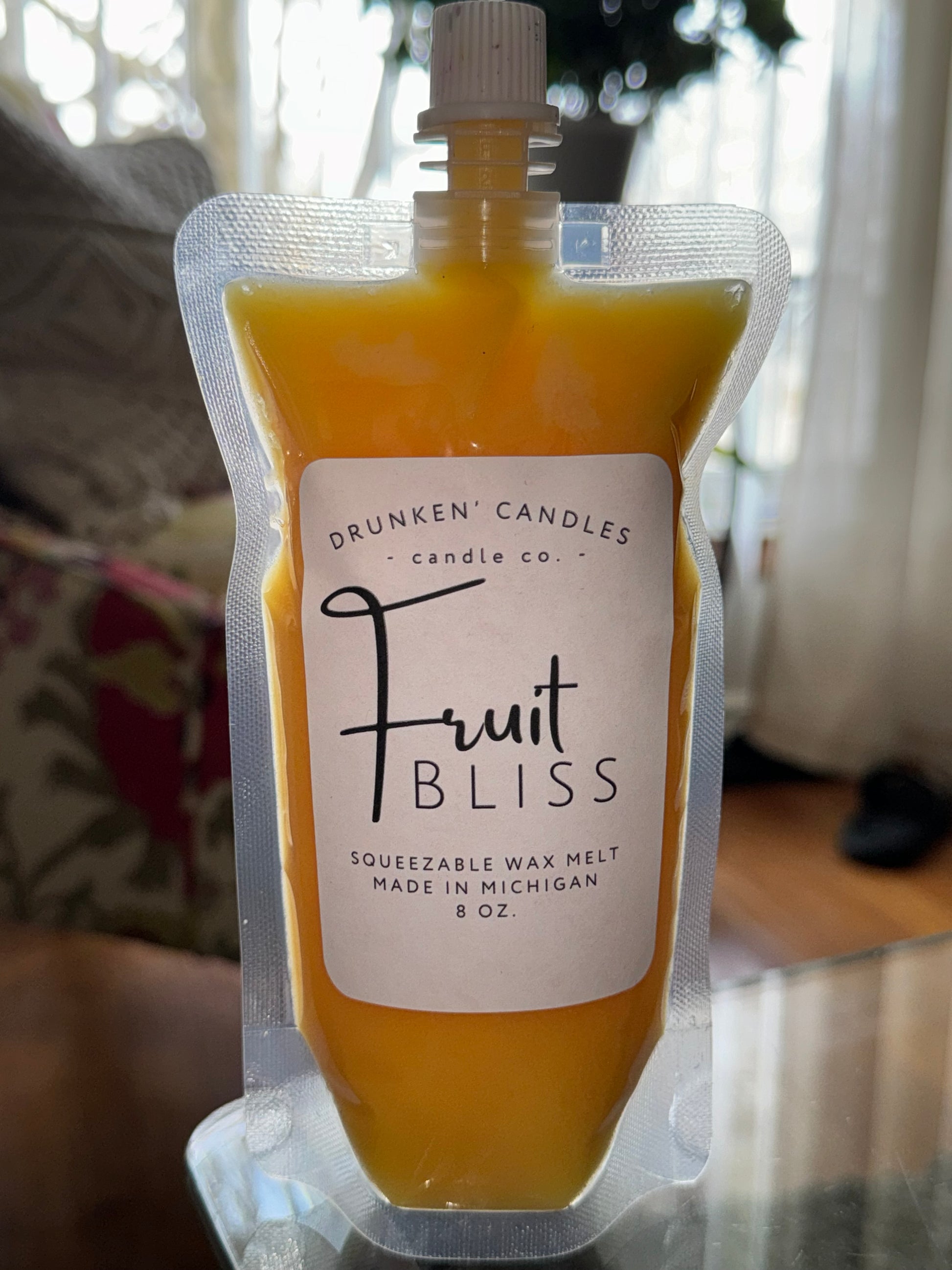 Expertly crafted with top notes of sweet pineapple and zesty orange, mid notes of creamy coconut and delicate jasmine, and base notes of warm vanilla, sugarcane, tonka bean, and musk. Our Fruit Bliss Squeezable Wax Melt will fill your space with the luscious scents of cherries and bananas, creating a cozy and inviting atmosphere for any occasion.