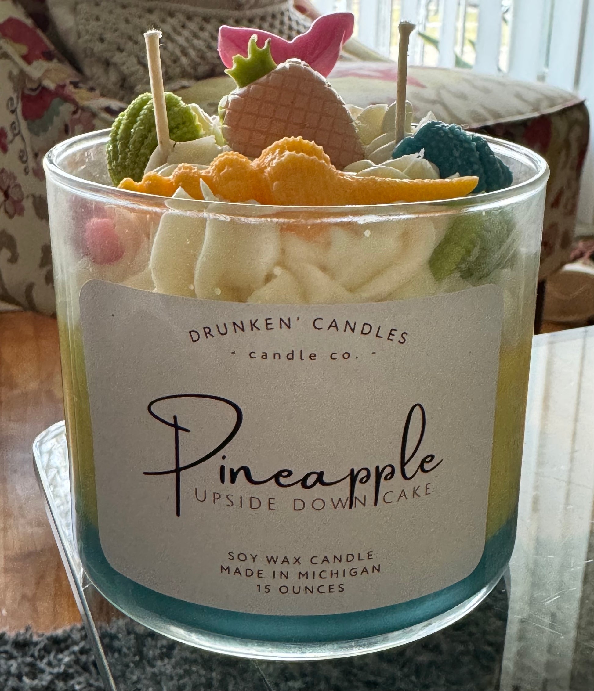 Indulge in our Pineapple Upside Down Cake - Sweets with its tropical pineapple flavor and sweet aroma. Highly fragrant, this candle will fill your room with its strong hot and cold throw, making it the perfect addition to any space. Elevate your senses with every burn.