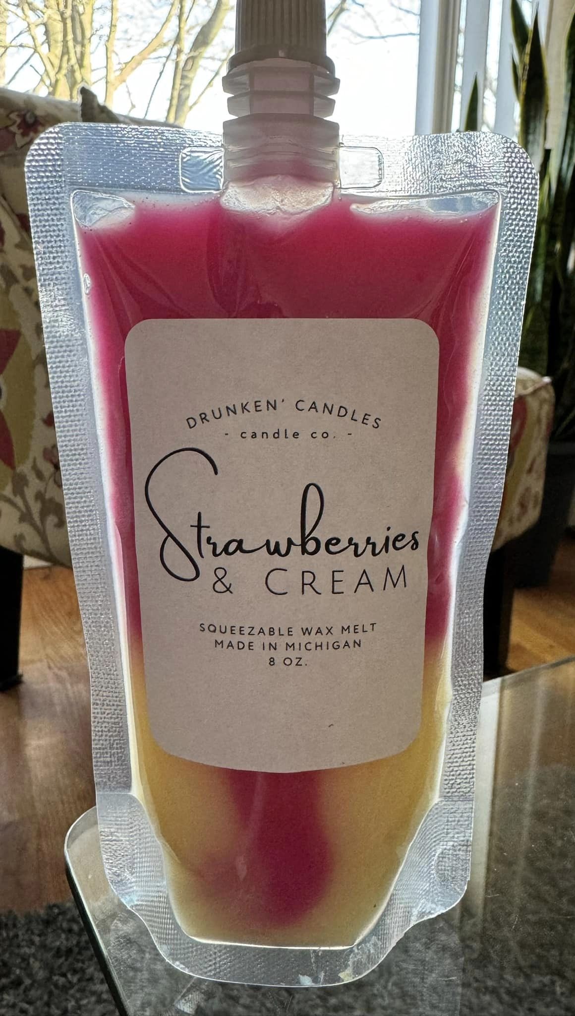 Highly fragrant squeezable wax melt! Smells just like straweberries and cream! Just squeeze into your favorite wax warmer, and enjoy the sweet smell of strawberries and buttercream!
