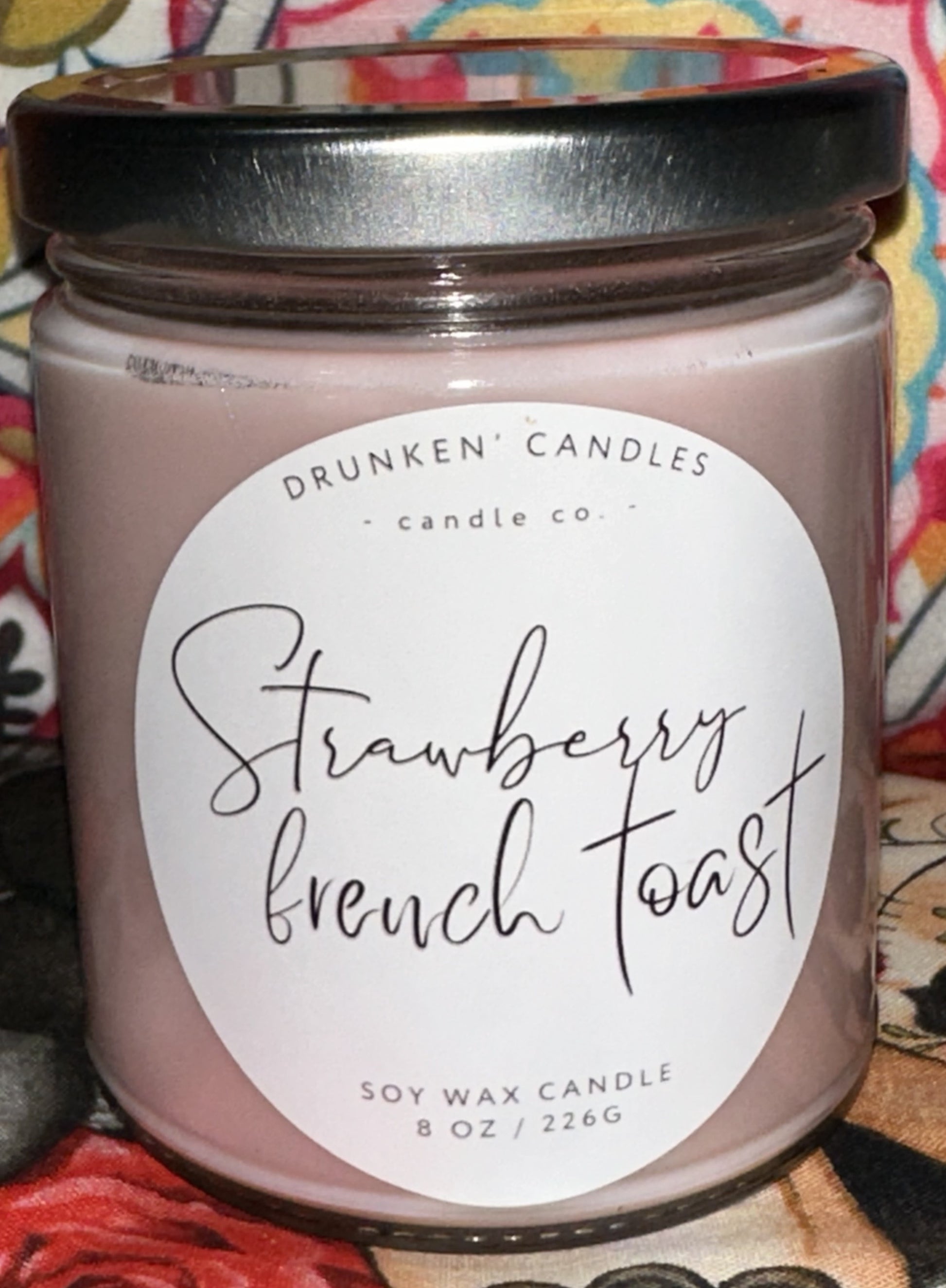 Indulge in a delicious breakfast scent with our Strawberry French Toast Soy Candle. This 8 oz. candle captures the buttery richness of French toast, complemented by strong hints of sweet strawberries and syrup. Perfect for creating a cozy and inviting atmosphere in any room.
