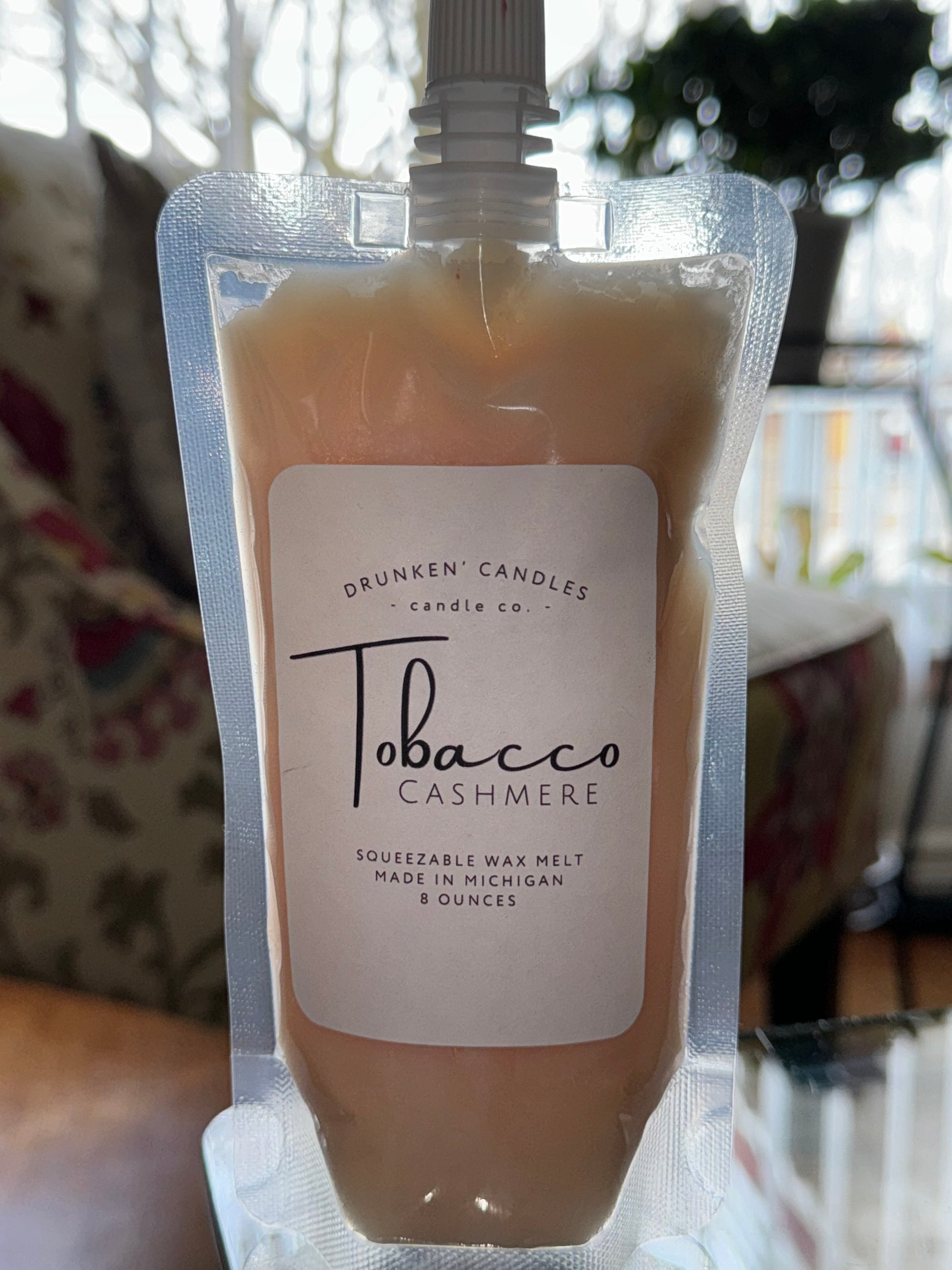 Indulge in the luxurious, masculine scent of Tobacco Cashmere with our Squeezable Wax Melt. This woodsy fragrance boasts top notes of smoky mahogany and crystal amber, with a soothing blend of star jasmine, clove leaf and soft cashmere. Finish off with base notes of sweet tobacco, tonka bean and white musk for a calming and upscale experience.